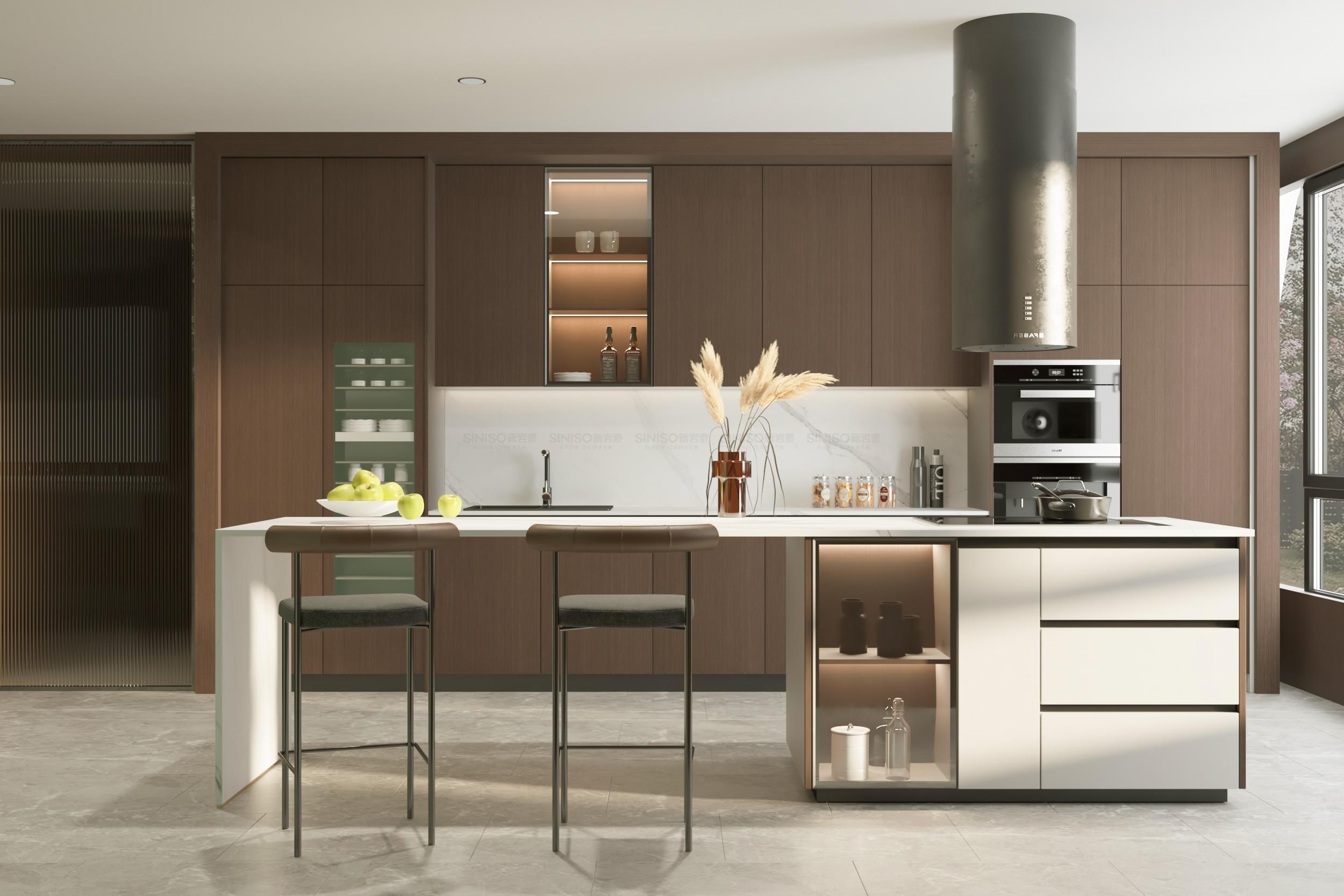 紋理及色彩都取自著名的北美黑胡桃木,通過最 先進的巖板工藝將黑胡桃木的生命氣息和溫潤的木材質(zhì)感重現(xiàn)。