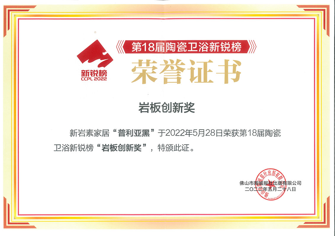 作為巖板領域的國家標準參編單位,新巖素已獲得諸多國家發(fā)明專利和實用新型專利,并獲取了CNAS國家實驗室認可認證及中國綠色產品認證。在大力推動綠色技術創(chuàng)新發(fā)展的同時,新巖素的品牌價值得到了廣泛認可,榮獲“家居綠色環(huán)保領跑品牌”、“全國綠色建材下鄉(xiāng)推薦品牌”以及“房企綜合實力TOP500·首選巖板供應商”等榮譽。此外,新巖素還與中國金茂、萬華地產、英良集團、顧家家居、歐派、九牧等一眾知名品牌建立了合作伙伴關系。